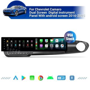 Warm Tips: Although we have made every effort to ensure this head unit will be compatible with the listed vehicles, please contact our sales team to confirm the model, manufacturing year, and shape of the center console of your vehicles before purchasing.AuCAR Android 12.3″ Car radio For Chevrolet Camaro 2016-2023 Dual Screen Digital instrument panel With android screen car multimedia DVD GPS navigation WIFI stereo Android player